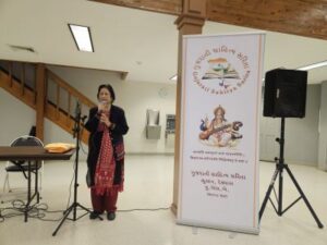 ડિસેમ્બરની ૮મી તારીખે સાંજે ૪ વાગે ગુજરાતી સાહિત્ય સરિતાની ૨૬૩મી બેઠક – વાર્ષિક બેઠક આશરે ૪૫ સભ્યોની હાજરી સાથે મળી. શરુઆતમાં ભાવનાબહેન દેસાઈએ તેમના સુંદર સ્વરે ગુજરાતીમાં સરસ્વતી વંદના કરી.