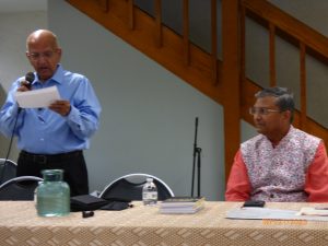 ત્યારબાદ નરેન્દ્રભાઈ વેદે આ ખાસ બેઠક “કલમનો ઉત્સવ”નાં મુખ્ય મહેમાન, ગુજરાતનાં સુપ્રસિદ્ધ કવિ શ્રી કૃષ્ણ દવે અને તેમનાં ધર્મપત્ની મધુબેન, હ્યુસ્ટનનાં કવયિત્રી દેવિકાબહેન ધ્રુવ, મુખ્ય પ્રાયોજક ડૉ. કોકિલાબહેન પરીખ અને હાજર રહેલા સૌ ગુજરાતી સાહિત્ય રસિકોનુ સ્વાગત કર્યું હતું, તથા આ houseful કાર્યક્રમ માટે આનંદ વ્યક્ત કર્યો હતો. તત્પશ્ચાત, શ્રી હસમુખભાઈ દોશીએ મુખ્ય મહેમાન શ્રી કૃષ્ણ દવેનું અને કોકિલાબહેન પરીખે કવિશ્રીનાં ધર્મપત્ની મધુબેનનું પુષ્પગુચ્છથી સ્વાગત કર્યું હતું.