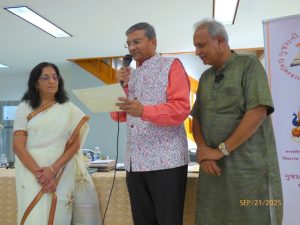 ગુજરાતી સાહિત્ય સરિતાની ૨૭૨મી બેઠક રવિવાર, સપ્ટેમ્બર ૨૧, ૨૦૨૫ ના રોજ સાંજે ૪ વાગે સુગરલેંડના Clyde and Nancy Jacks Conference Center ખાતે યોજવામાં આવી હતી, જેમાં આશરે ૯૫-૯૭ જેટલા સભ્યોએ હાજરી આપી હતી. કાર્યક્રમની શરૂઆત શ્વેતાબહેન શ્રોફના કંઠે સરસ્વતી-વંદનાથી થઈ હતી.