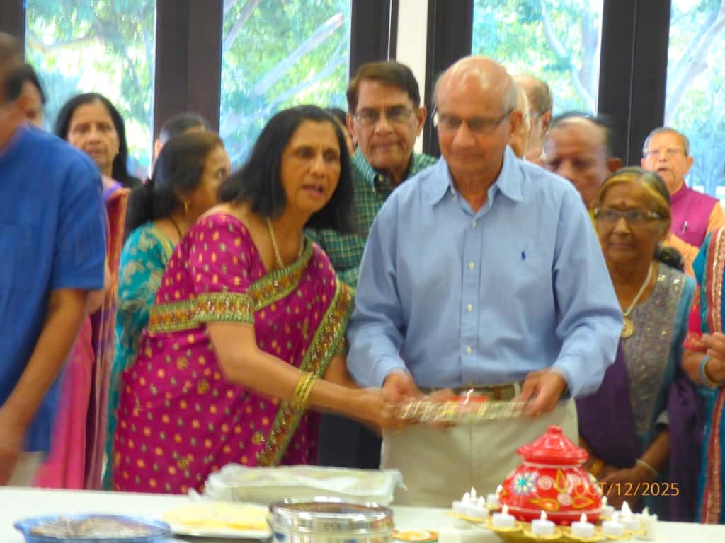 ત્યાર પછી બધાં ભાઈ બહેનો ભક્તિભાવથી લગભગ કલાક, દોઢ કલાક ગરબે ઘૂમ્યાં હતાં. જે ભાઈ-બહેનો ઉત્સવને અનુરૂપ પરંપરાગત ગુજરાતી પહેરવેશ્માં ગરબે ઘૂમ્યાં એમણે તો ઉત્સવનો ઉત્સાહ અનેકગણો વધારી દીધો હતો. અને છેવટે, પહેલેથી નક્કી કર્યા મુજબ બધાં દિવાળીનાં જે સ્વાદિષ્ટ નાસ્તા, મિઠાઈ અને માતાજીના પ્રસાદ લાવ્યાં હતાં તેને ભેગાં મળી ખુશી-ખુશી માણ્યાં હતાં. આ માટેનું જરૂરી coordination અવનીબહેને કર્યું હતું.