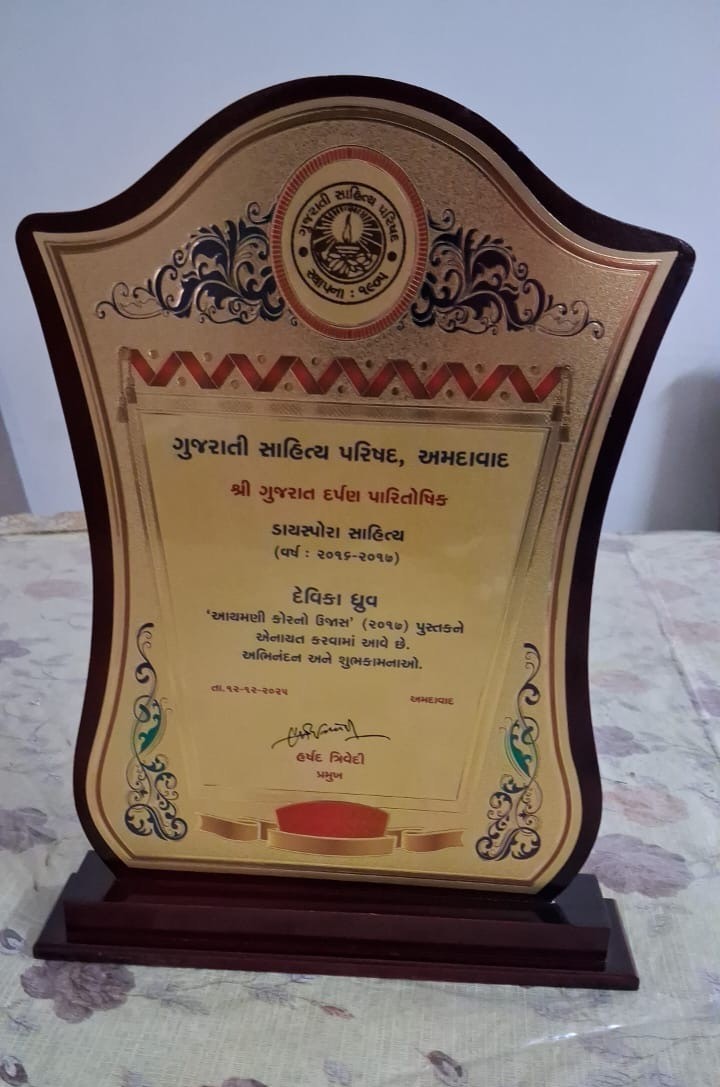 ‘ડાયસ્પોરા સાહિત્યના પારિતોષિક’ વિજેતા શ્રીમતી દેવિકા ધ્રુવ